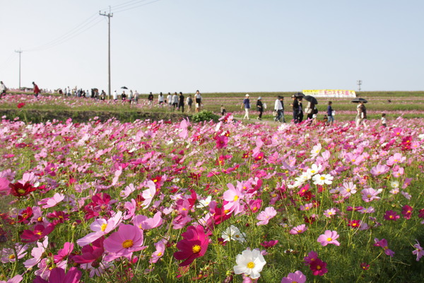 毎年秋になると多くの来園者が訪れる「三光コスモス園」では、約2800万本のコスモスが咲き誇るそうです!またコスモスの花の色の違いを利用してキャラクターや模様を描くコスモスアートも人気ですよ!写真撮影にもぴったりです!