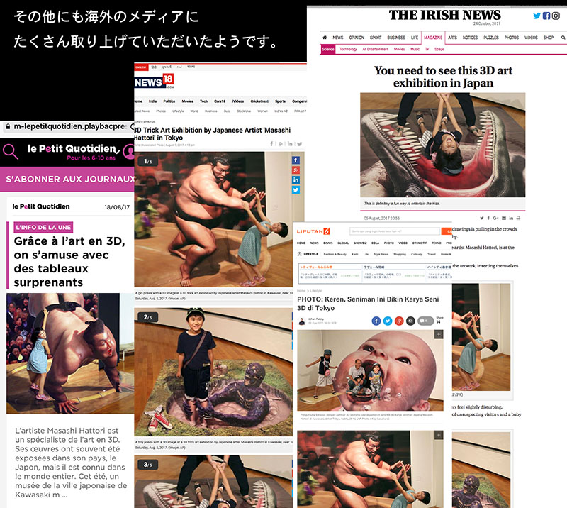 当館の作品を手掛ける3Dアート作家服部さんが行った神奈川県・川崎市市民ミュージアム『からくりトリックの世界』(2017/7/8~8/20開催)について海外の多くのメディアで紹介され、ドイツのテレビ番組からも取材を受けたそうです!