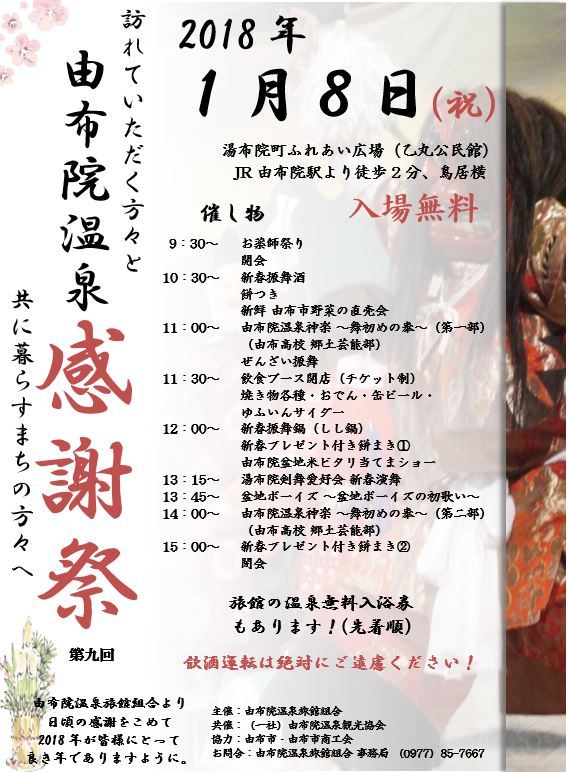 今日は、毎年成人の日に開催される由布院温泉感謝祭のご紹介です(^O^)