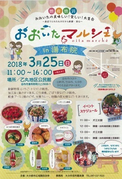 今日は3月25日(日)、湯布院で初めて開催される『おおいたマルシェ』のご案内です。
