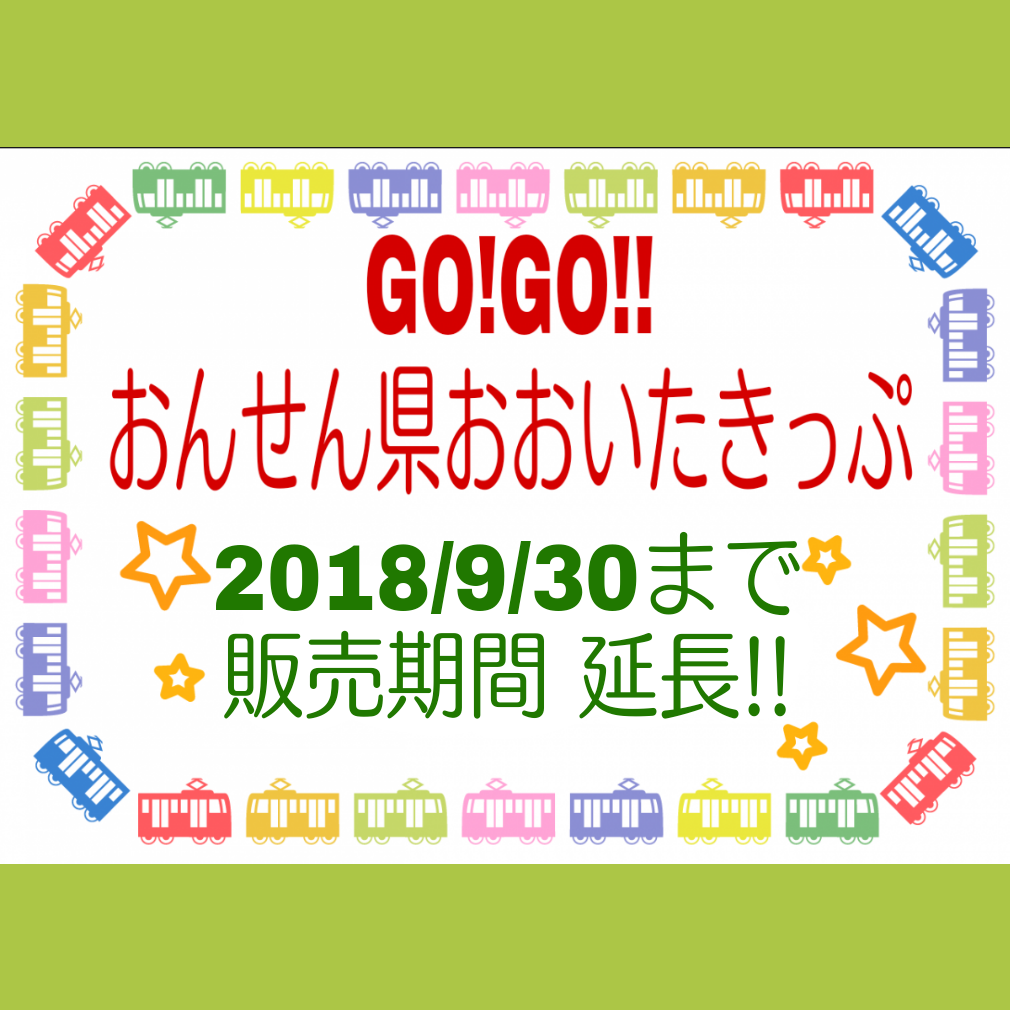 ☆JRの「GO!GO!!おんせん県おおいたきっぷ」の販売・利用期間が延長になりました!7月31日まででしたが9月30日までになったので、夏休みのお出かけにも活用できそうですね!切符と一緒にもらえる1000円分クーポンは当館でも利用可能なので、ぜひご利用ください♪