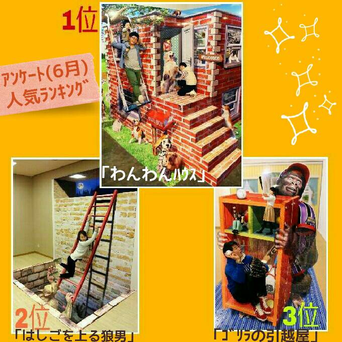 男女、年齢問わず大人気です☆3位中2つが6月から新しく入ったリニューアル作品という結果で、新しい作品も楽しんでいただけているようです♪まだ来たことがない方はぜひお越しくださいね^^