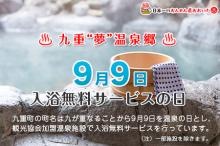 町名にちなみ9月9日、九重町内の観光協会加盟施設で一定の時間帯のみ無料で入浴できます。