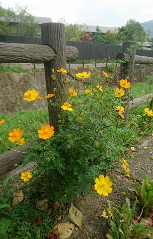 写真は、当館隣の大分川沿いに咲いている『キバナコスモス』