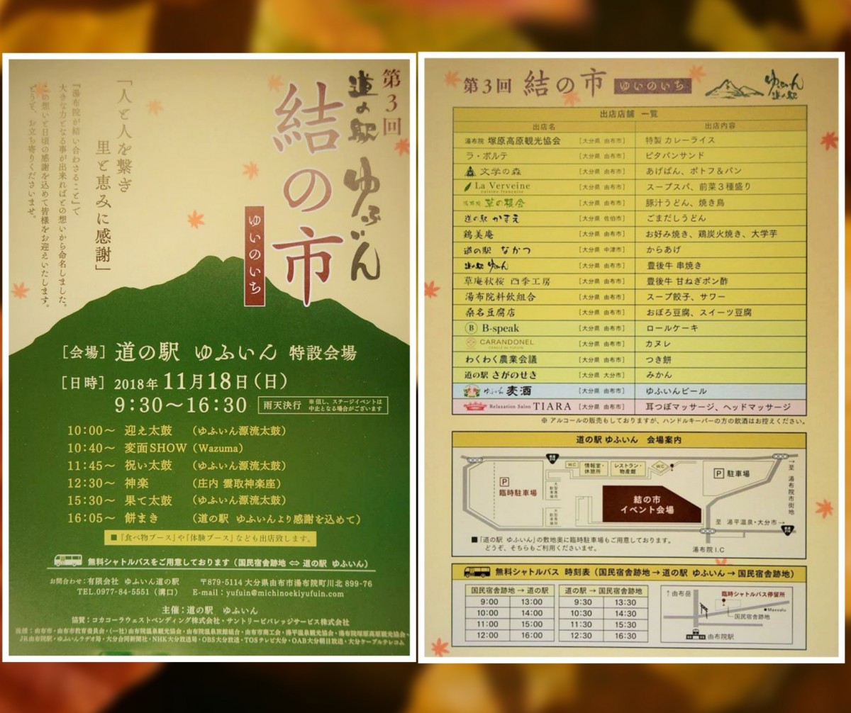 本日は湯布院の週末イベント情報!今週日曜日に道の駅ゆふいんで「結の市」が開催されます♪