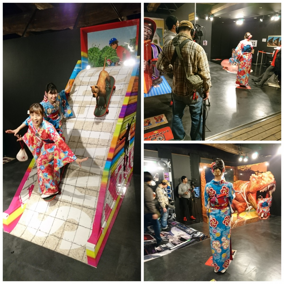 綺麗な着物姿のお二人がトリック3Dアートを体験しながら紹介してくれています☆