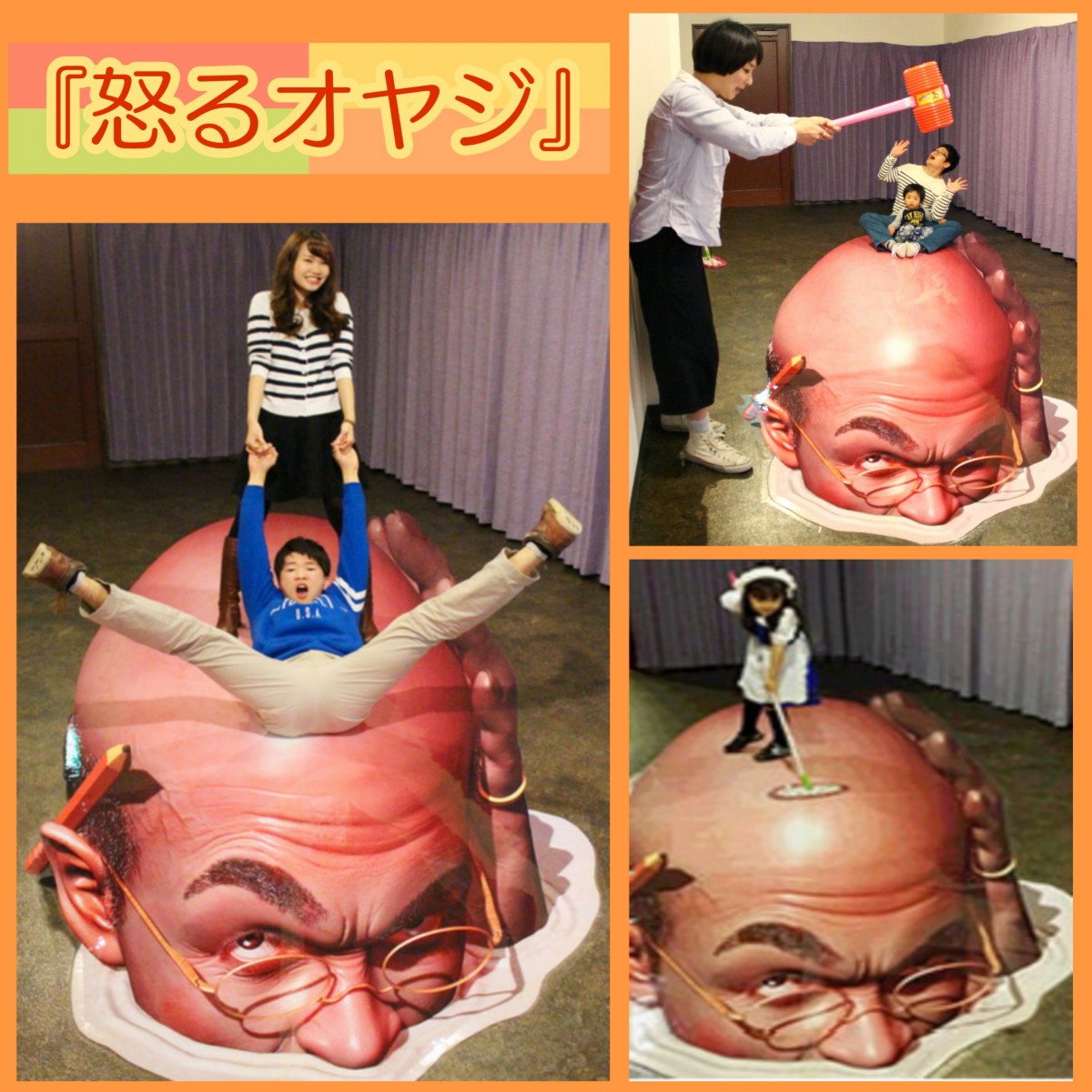 本日は、「怒るオヤジ」の撮り方パターンをご紹介!おじさんの頭の上に乗って、色んな写真が撮れます♪頭の上に沢山乗って、大人数での撮影もできるので、春休みのグループ旅行の記念写真にもオススメです!